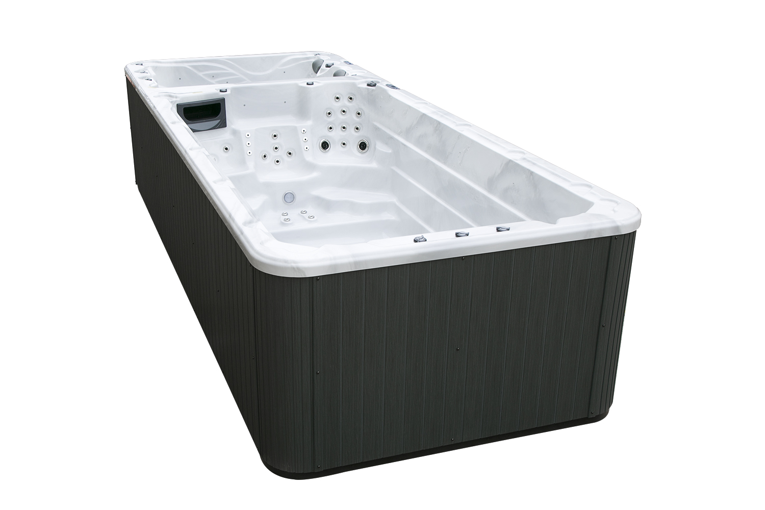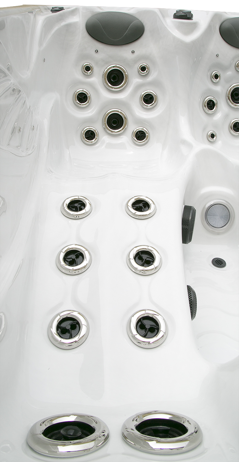 Два гидромассажных насоса по 1,5 кВт в сочетании с 76 форсунками обеспечивают интенсивный массаж и эффективную гидродинамику в спа-зоне. Мощный водяной насос на 2,9 кВт и форсунки противотока нового поколения создают идеальные условия для занятий плаванием и тренировок на воде в основной части бассейна.