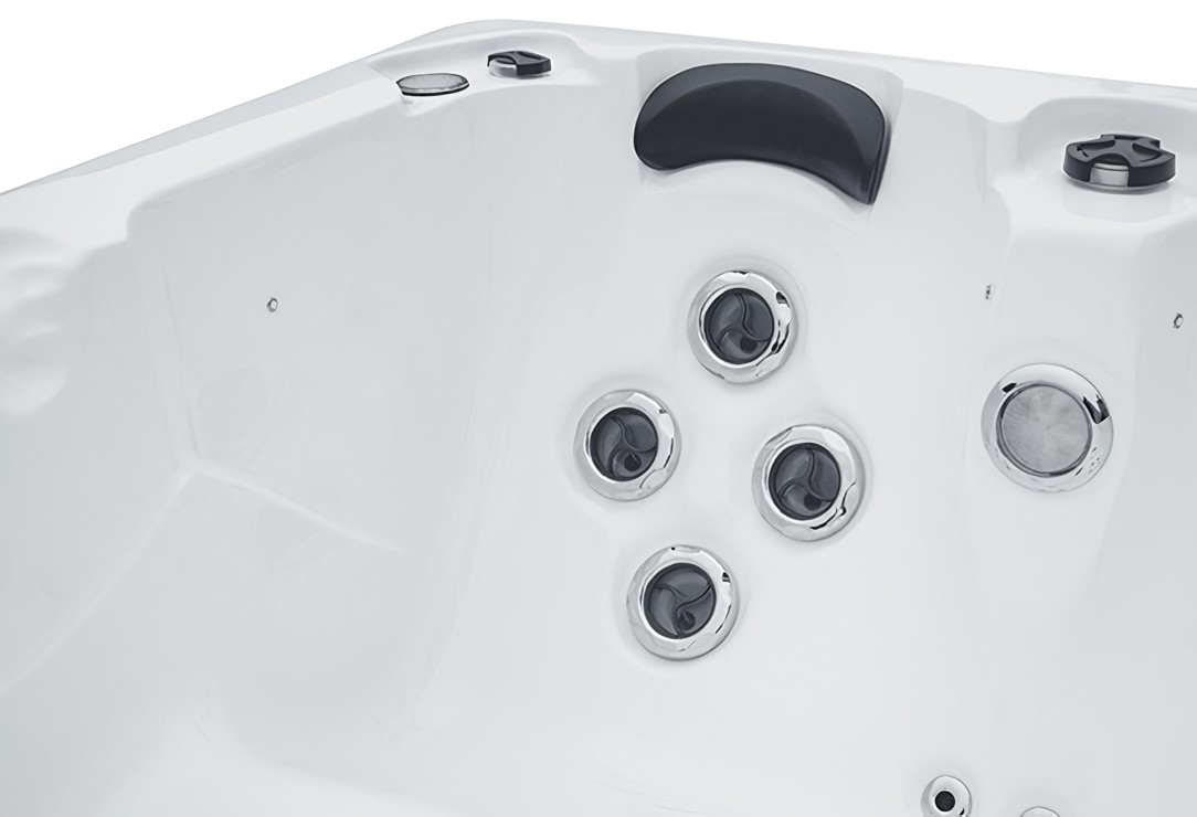 Для изделия таких размеров, в гидромассажном СПА-бассейне Ловиа Спа ZR6009 установлено довольно много форсунок - 30 штуки. Через них вода и воздух направленно воздействуют на тело, производя желаемый гидромассажный эффект. Каждый пользователь может индивидуально регулировать силу потока.